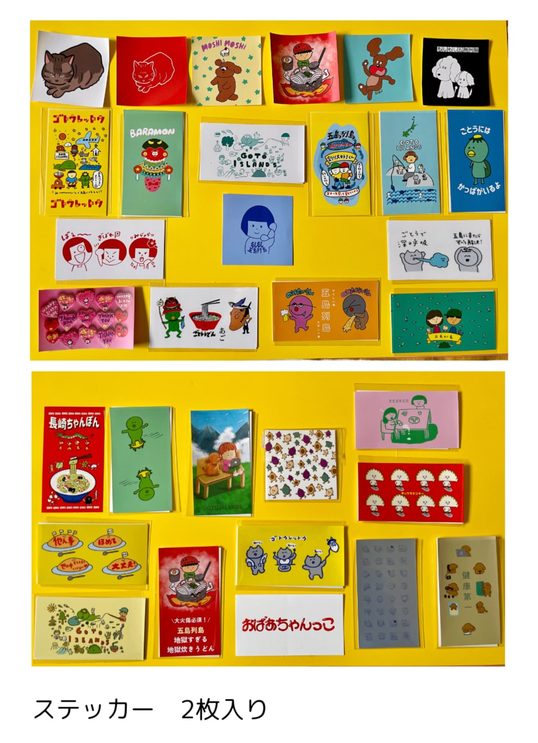 ランダムですが、だいたい、巾着440円1、デカ缶バッジ440円1、デカマグネットが460円1、キーホルダー370円1、ステッカー2枚組120円5、缶バッジ200円3入ったお得なセットとなっております〜!!!!